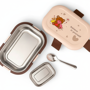 1-Compartment Bento Lunch Box with Spoon – Leakproof Stainless Steel Food Container (Random Design – Pack of 1)
