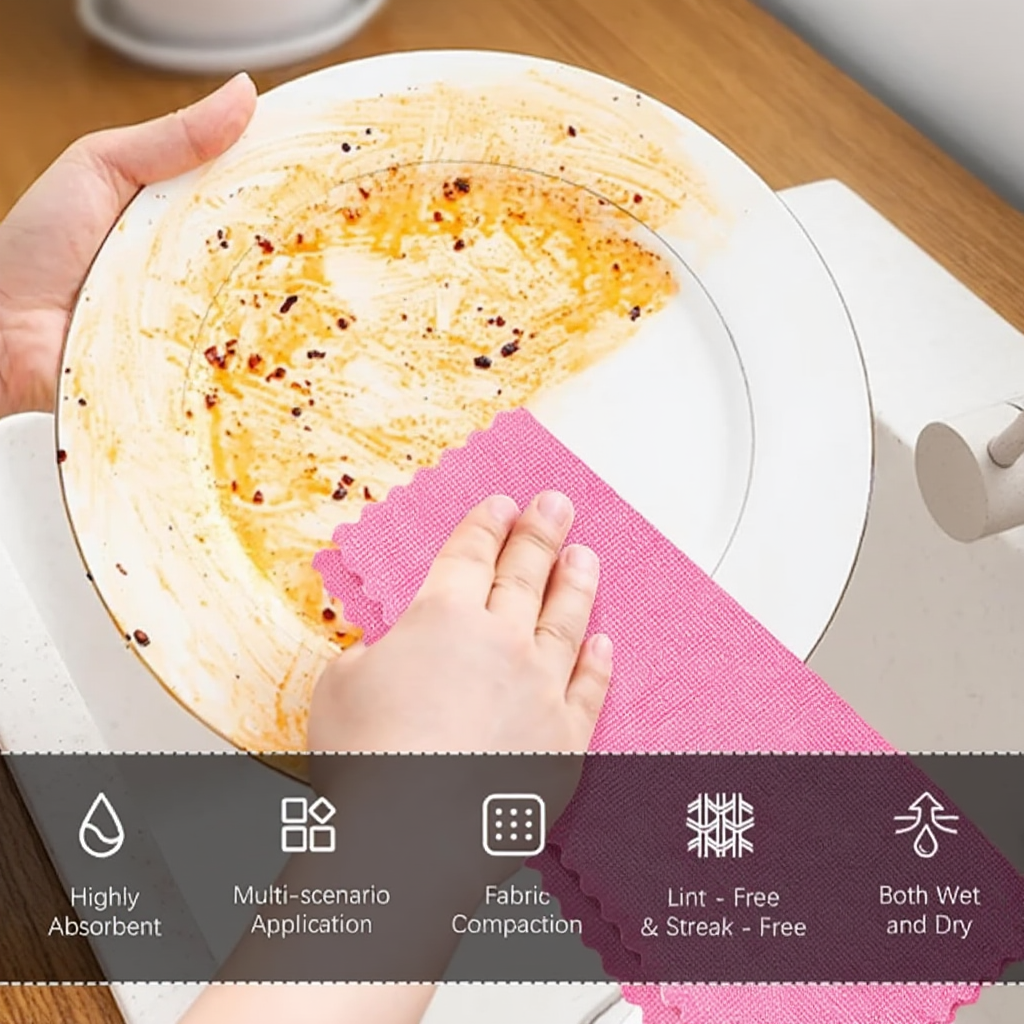 10 Pcs Super Absorbent Microfiber Dish Cloth – Reusable Cleaning Towels for Kitchen & Home(Pink Color)