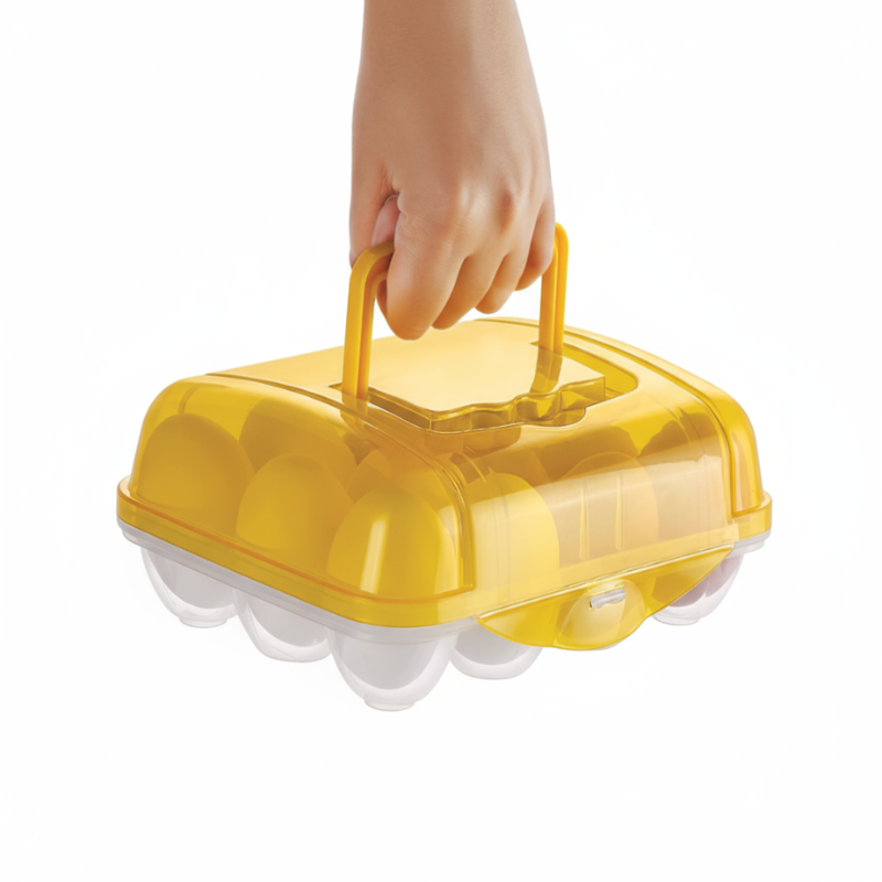 Plastic Egg Basket of 12 Egg Slot – Durable Egg Storage Box with Handle for Fridge, Kitchen & Travel (Random Color-Pack of 1)