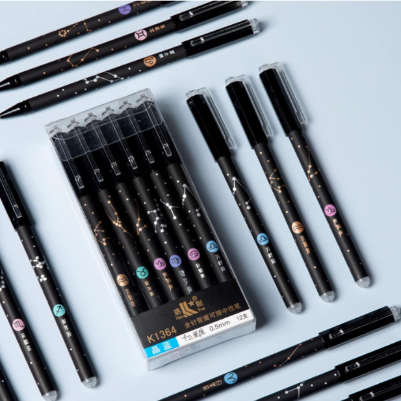 12-Piece Constellation Erasable Pens Set – 0.5mm Smooth Blue Ink Gel Pens for Students, School & Office Use