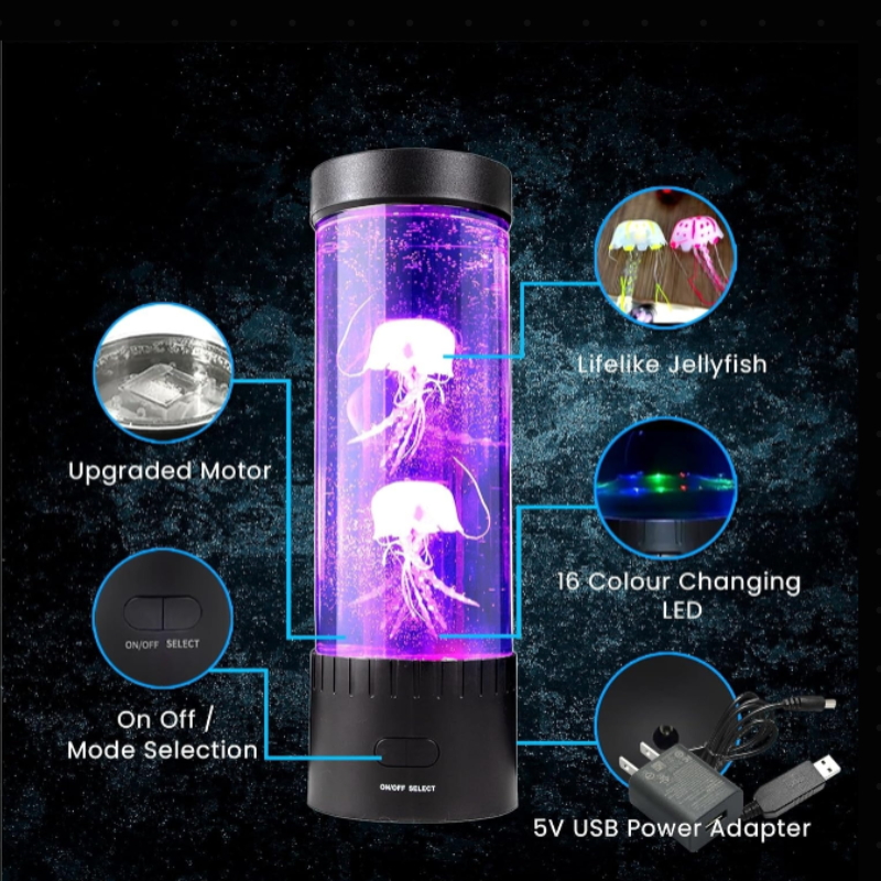 16 Color Changing Jellyfish Lava Lamp – LED Mood Light for Sensory Room, Home & Office Decor