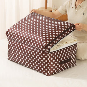 cloth storage bag | foldable storage bag | polka dot fabric organizer | 2 compartment storage bag | closet organizers | clothes storage bag online | non-woven fabric storage box | travel storage bag for clothes | large storage bags for garments | space-saving wardrobe bag