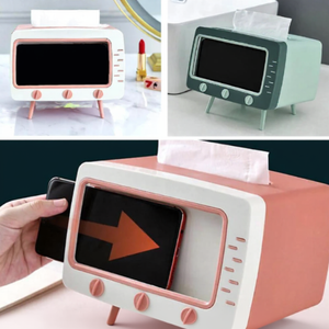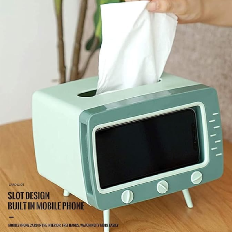 2 in 1 TV-Shaped Tissue Box with Mobile Phone Holder – Cute Retro Napkin Holder & Smartphone Stand for Home, Office, or Car Decor (Random color)