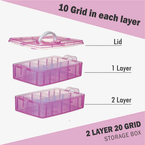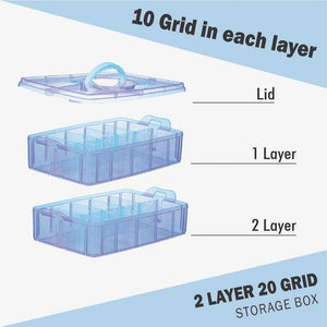 2 Layer 20-Grid Organizer Storage Box – Jewellery, Craft & Accessories Container with Removable Dividers | Multipurpose Cosmetic & Vanity Organizer (Random Colour)