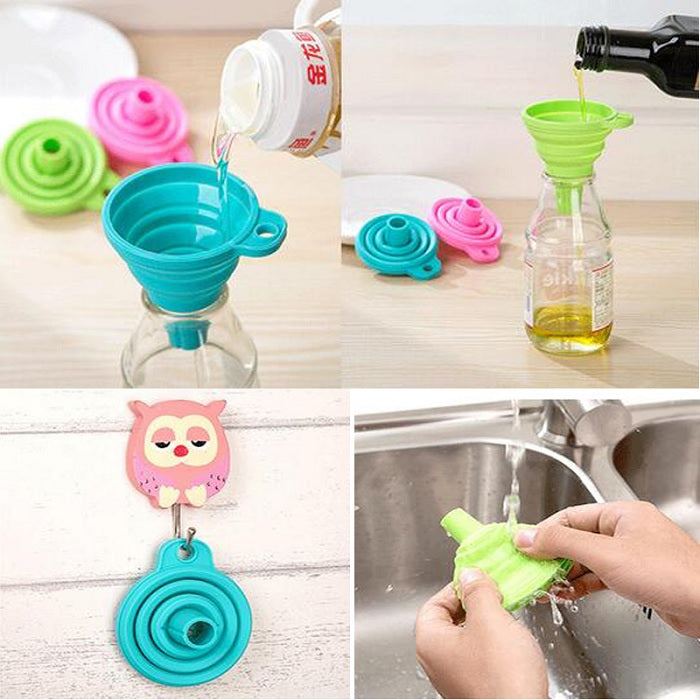 Foldable Kitchen Funnel – Collapsible Silicone Funnel for Easy Liquid Transfer & Storage (Random Color)