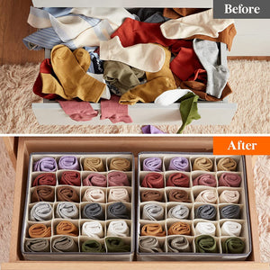 Keep your wardrobe neat and clutter-free with this 24-cell collapsible drawer organizer set. Each box offers 24 compartments, making it perfect for sorting and storing socks, underwear, ties, belts, and other small items with ease.