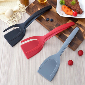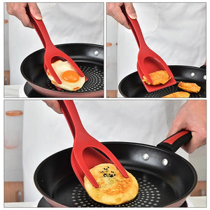 2 in 1 Grip and Flip Spatula Tong Versatile Kitchen Spatula Silicone Egg Flipper Tong Pancake Fish French Toast Omelet making for Home Kitchen Cooking Tool (Random Color)