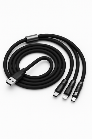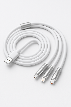 3 in 1 Multi Charger Cable Heavy Duty Unbreakable Silicone (Random Color)
