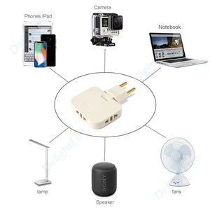 - 3-in-1 Design: Features three EU plug outlets along with charging capabilities, allowing simultaneous use of multiple devices.