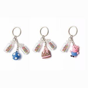 Package: 6 Pcs Glitter Bottle & Character Keychain