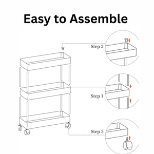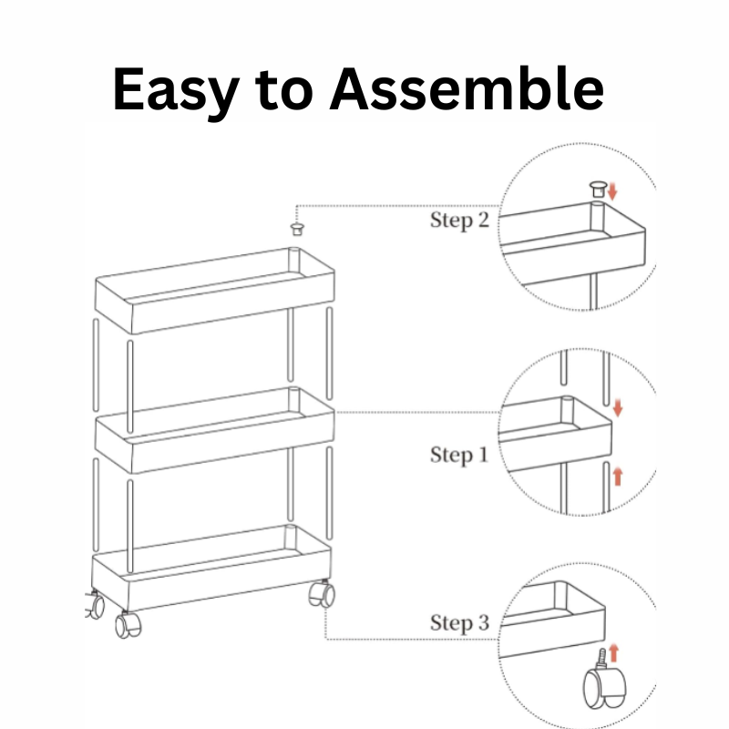 Simply assemble the frame, insert the shelves, attach the wheels, and start organizing.