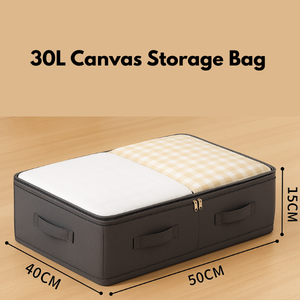 Keep your essentials organized with this 30L Large Capacity Canvas Storage Bag. Made from durable, washable canvas material, it provides a reliable and eco-friendly way to store your clothes, linens, blankets, and travel items.