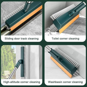 3-in-1 Bathroom Cleaning Brush with Wiper – Long Handle Floor, Tile & Corner Scrubber with Scraping Blade (Plastic & Stainless Steel)