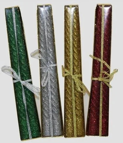 - Glitter Finish: The surface of the candles is adorned with sparkling glitter, catching the light beautifully and creating a shimmering effect.