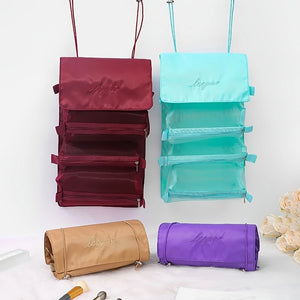 4-in-1 Roll-Up Hanging Makeup Bag with 4 Detachable Mesh Storage Bags - Random Color