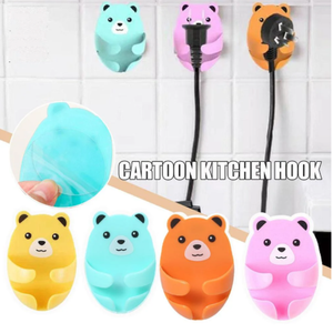 Design: Cute bear shape with a functional hook for cable/plug holding