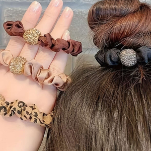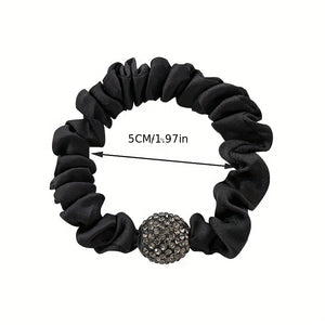 4 Pcs Rhinestone Hair Rope Set – High Elastic Adult Rubber Bands, Stylish Plain Hair Ties (Random Colors)