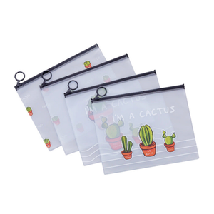 5 Pcs Cactus Print Transparent Zipper Ring Bags – Cute Student Pencil Case & Creative Multipurpose Pouch Set