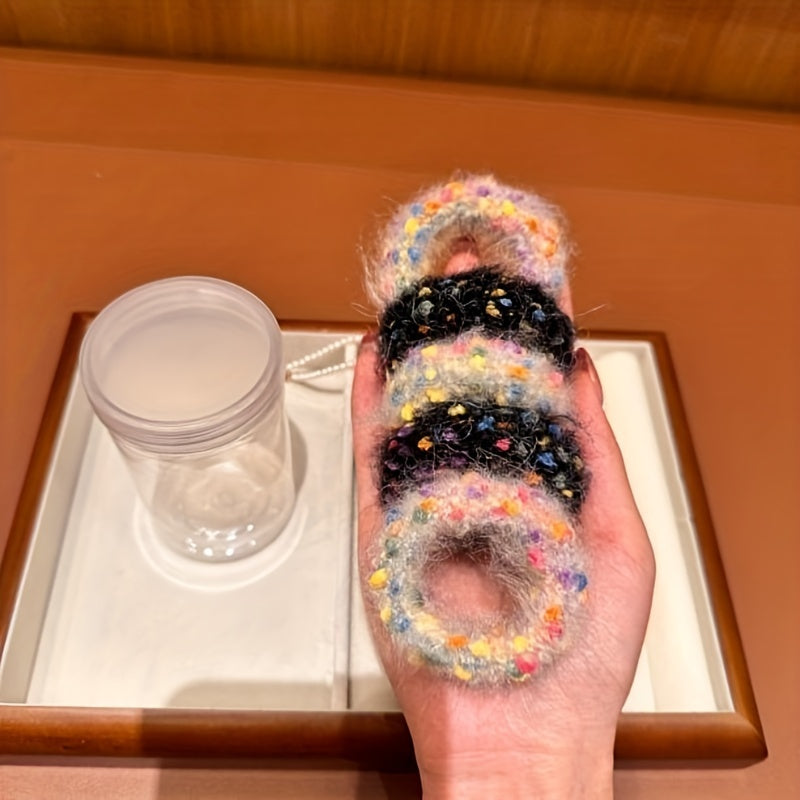 5 pcs Colorful Fluffy Hair Ties for Women & Girls - Soft Plush Elastic Hair Bands with Multicolor Pastel & Bold Hues, Perfect for Ponytails & Stylish Hairstyles