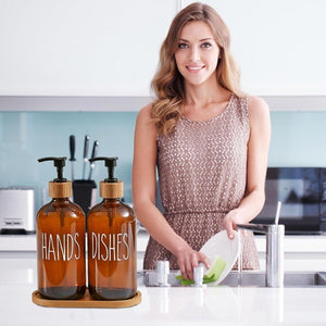 2Pcs 500ml Glass Soap Dispenser, 500ml Soap Dispenser Bathroom, 2 Pack, Refillable Liquid Glass Soap Dispenser Set for Soap and Lotion
