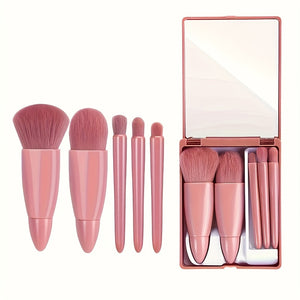 5 Pcs Mini Makeup Brush Set with Built-In Mirror ā Travel-Friendly Cosmetic Brushes with ABS Handle & Soft Bristles (Ideal Gift Set)