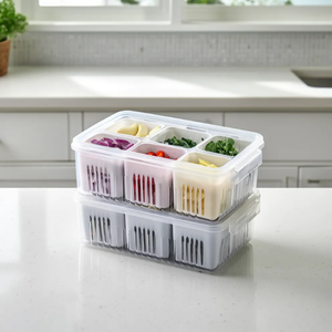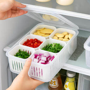 6 Compartment Fridge Storage Box – Plastic Freezer Container with Removable Dividers for Organized Food Storage