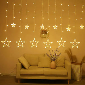 LED Hanging Star Lights – Window Curtain String Lights for Festivals, Christmas & Home Decor(6 Small + 6 Big Stars)