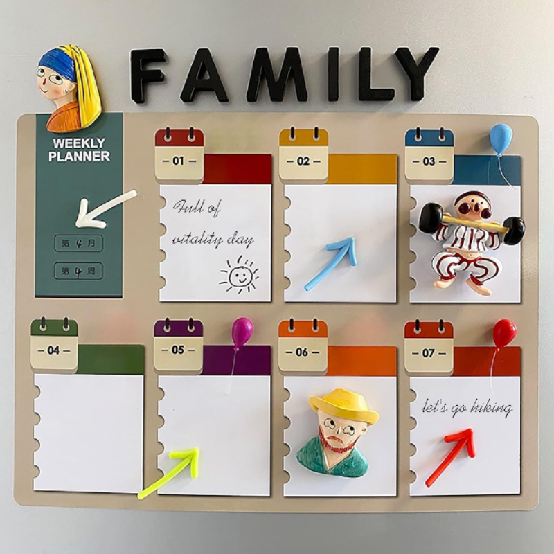 Helps organize to-do lists, bills, memos & kids’ artwork.