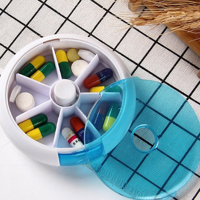 Weekly pill organizer | 7 day pill box round | Rotating pill case | Travel pill storage box | Medicine organizer box | Pill dispenser online