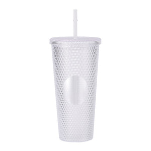700ml Diamond Transparent Plastic Water Cup with Straw – Large Capacity Car & Travel Drink Bottle (Random Color) (Pack of 1)