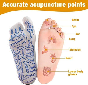 Targeted Pressure Points: Embedded acupressure nodes on the soles of the socks stimulate specific reflex zones corresponding to various organs and systems in the body. Â