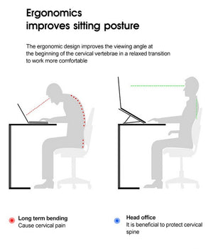Reduced Neck and Back Strain: By raising your laptop screen to a more eye-level position, the stand helps reduce strain on your neck and back muscles. This minimizes fatigue and discomfort, allowing you to work for longer periods without pain.