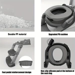 Adjustable Staircase Potty Chair for Boys and Girls, Collapsible Training Seat with Ladder, Comfortable PU Cushion
