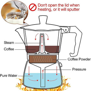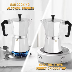 aluminum coffee maker | stove coffee percolator | stovetop espresso maker | moka pot | camping coffee percolator | portable coffee maker | gas stove coffee maker | home espresso percolator | Italian coffee maker | lightweight travel coffee pot