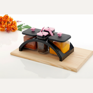 Tray base keeps jars organized and prevents mess on kitchen counters