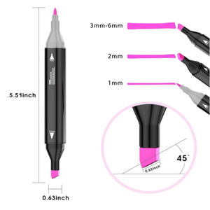 Dual-tip design – brush tip for coloring, blending & calligraphy; chisel tip for outlining & shading