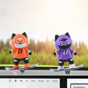 Sliding Action: Watch the charming black and white cat figurine effortlessly slide back and forth on its miniature skateboard with the movement of your car. The smooth-gliding wheels ensure a mesmerizing experience.