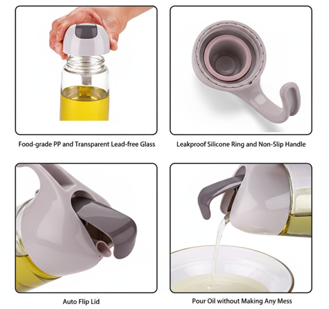Leak-Proof Spout: Prevents drips, keeps kitchen clean and oil-controlled