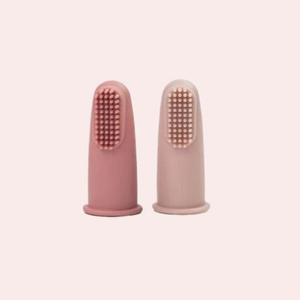 Design: Finger-mounted toothbrush with soft bristles and massage nodules—dual-sided for brushing and gum soothing