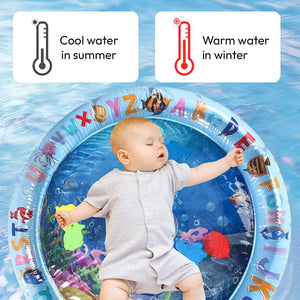 Encourages hand-eye coordination, motor skills, and sensory exploration as babies play with floating toys in the water-filled mat.