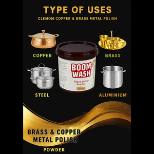 Boom Wash Metal Shining Powder – Multi-Metal Cleaner for Copper, Brass, Steel, Silver, Aluminium & Iron with Anti-Tarnish Formula