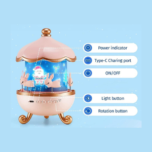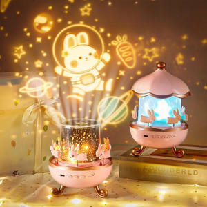 Bunny Carousel Night Lamp – Kids Star Projector with 5 Random Films & Color-Changing LED (with USB cable)