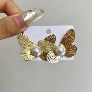 Gold Butterfly Earring – Light Luxury Statement Jewelry for Women, Exaggerated Elegant Design, Unique Niche Earrings(1 Pair)