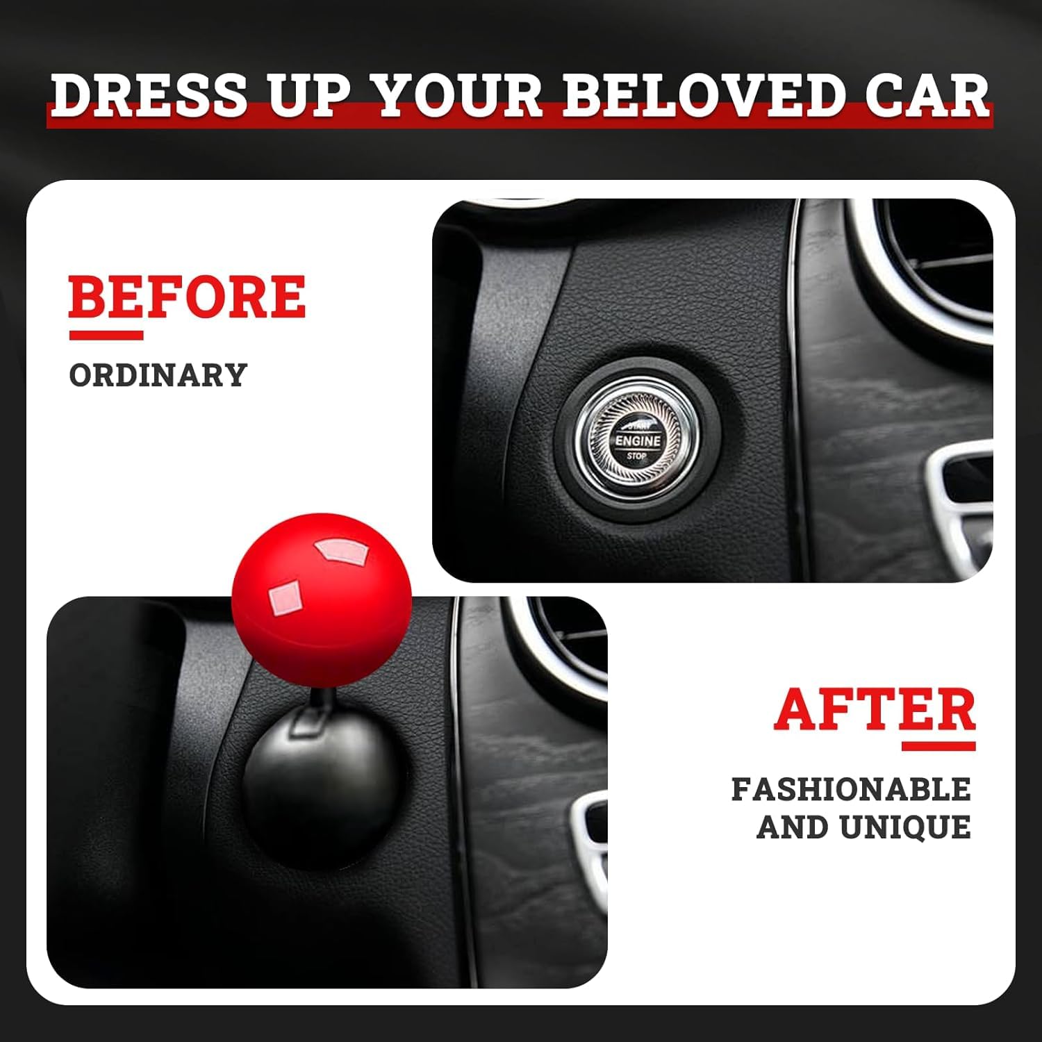 Ball-Shaped Start Button Rocker – Stylish Engine Start Cover for Car Interior Decoration