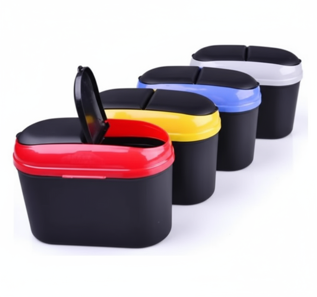 2-Way Lid Car Dust Bin – Multifunctional Garbage Organizer for Car & Vehicle (Random color-Pack of 1)
