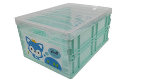 Cartoon Plastic Folding Organizer Storage Box with Lid – Cute & Practical Storage Solution
