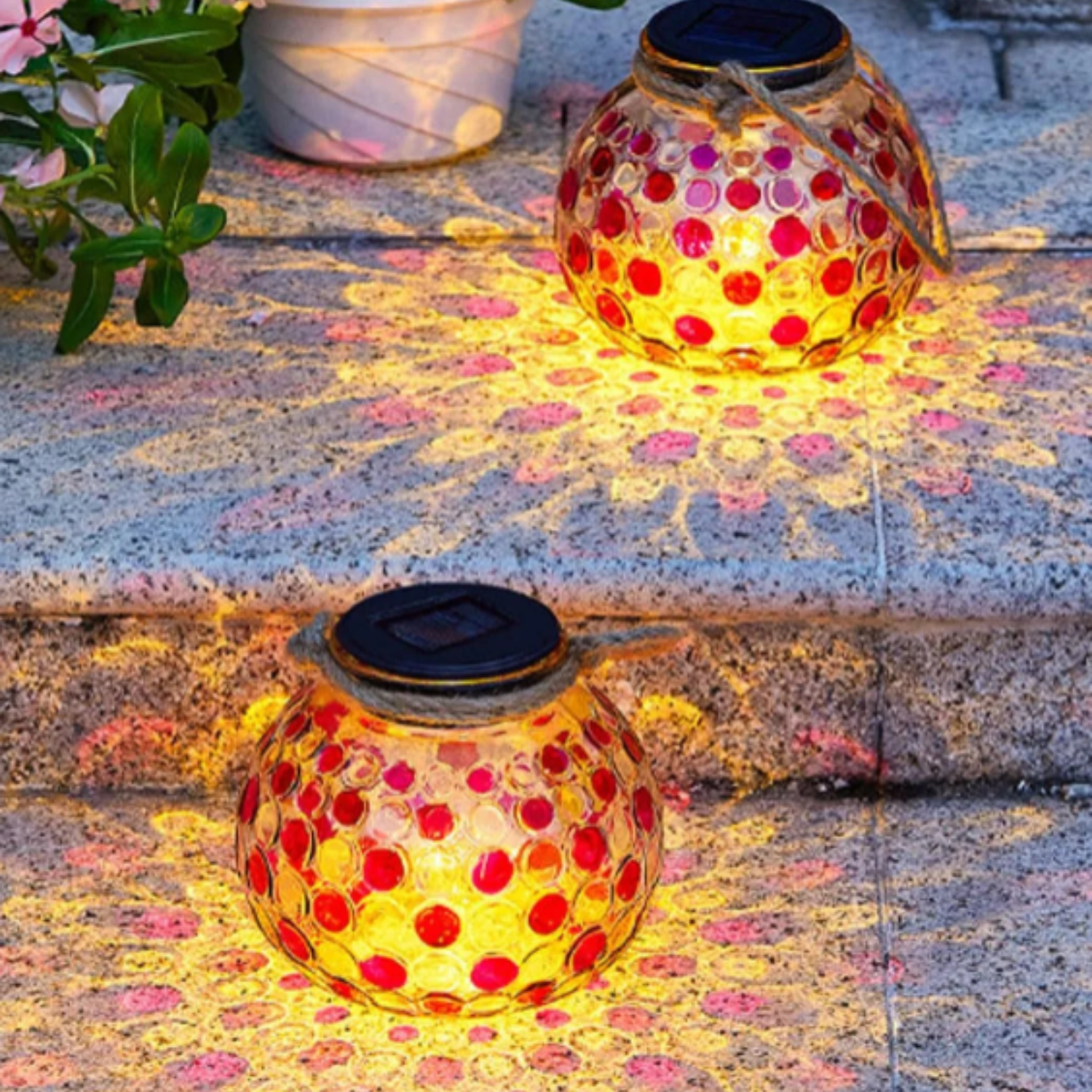 Illuminate your outdoor space with our Solar Glass Pink Polka Dot Mason Jar Hanging Lights, a charming and eco-friendly addition to your garden, patio, or balcony. Powered entirely by solar energy, these lights are perfect for adding a warm, colorful glow to any outdoor setting without the need for electrical wiring.