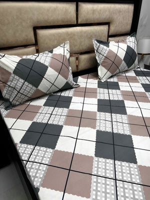 Contemporary Block Style Bedsheet – Neutral Palette with Pillow Covers – Double Size