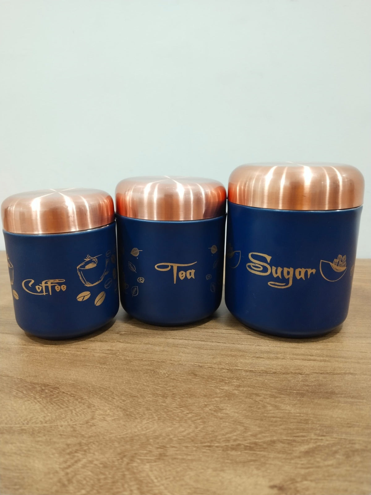 Copper Finish Blue Colored Stainless Steel Storage Canister