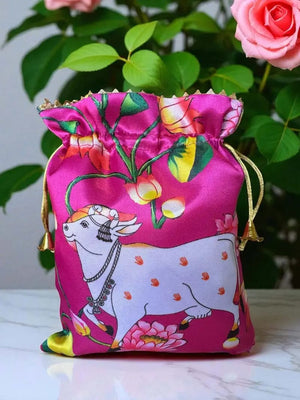 Trendy Cow Print Potli Bags – Perfect for Diwali, Navratri & Wedding Return Gifts (Random color-Pack of 1)